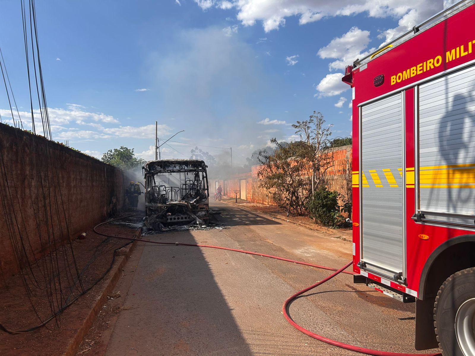 A Guarnição de Bombeiros (GuBM) chegou prontamente ao local e iniciou o combate às chamas, utilizando aproximadamente 4.000 litros de água para extinção dos focos remanescentes e resfriamento das partes ainda superaquecidas do veículo. Em seguida, foi realizado o rescaldo e a verificação de áreas próximas, pois o calor radiado atingiu a rede aérea de energia elétrica, causando derretimento dos cabos e risco de propagação.